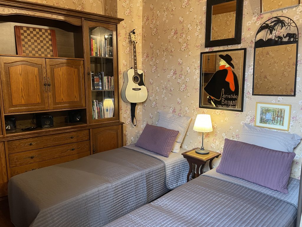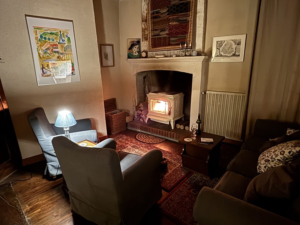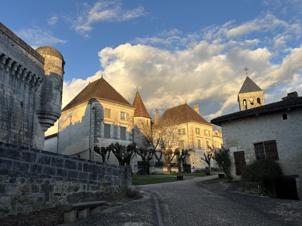 Au Pied du Chateau, a stone house from the 13th centuryAcross from the castle on an historic pedestrian-only streetA cook’s kitchen with cabinets, counters, pots, pans, dishes, and appliancesSalon for living and diningBedroom on the main floor, set up as double bedDortoir upstairs with three beds and half bathThe Courtyard Suite with full bathBathroom with shower on main floorBathroom in Courtyard SuiteBedroom on main floor set up as libraryOnto the balcony and courtyardBreakfast in the courtyardCourtyard and balconyLooking out the front doorLooking up the streetEnjoying an apéritif in front of the houseA medieval villageAu Pied du Chateau viewed from the castle windowSunset in winter on rue de l’EgliseLunch at the café at the cornerDessert in the restaurant down the streetPicnic in the park up the streetSitting area upstairsAt the restaurant three doors up the streetSalon in winter with wood-burning stoveAt the bakeryIn the dungeon at the castleWalking back home from the bakeryPicnic the park by the riverCafé in PerigueuxMonday is Music Night in the town squareSalon in summer for living and diningOn mange bien Au Pied du ChateauBedroom #3, the Courtyard Suite, with en-suite bath.Sitting area in Courtyard SuiteBedroom on the main floor set up as two single beds